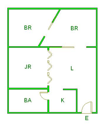 ▲ E(入口)=entrance BR (洋室)=Bedroom BA (浴室)=Bathroom