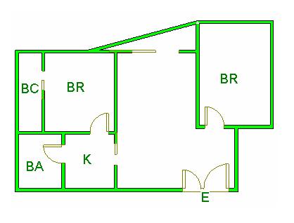▲ E(入口)=entrance BR (洋室)=Bedroom BA (浴室)=Bathroom