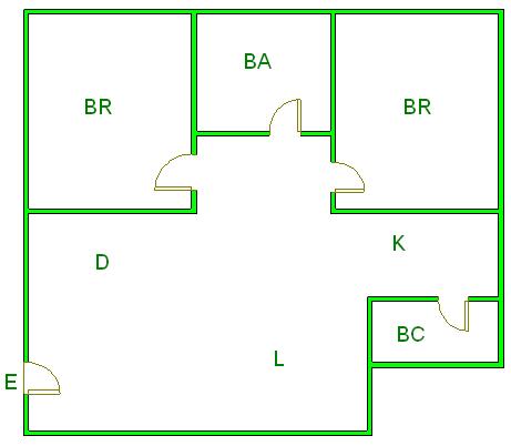▲ E(入口)=entrance BR (洋室)=Bedroom BA (浴室)=Bathroom