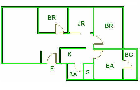 ▲ E(入口)=entrance BR (洋室)=Bedroom BA (浴室)=Bathroom
