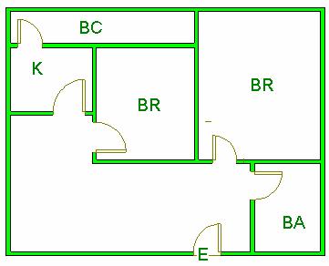 ▲ E(入口)=entrance BR (洋室)=Bedroom BA (浴室)=Bathroom
