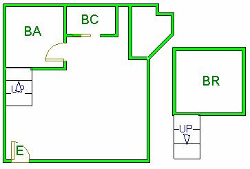 ▲ E(入口)=entrance BR (洋室)=Bedroom BA (浴室)=Bathroom