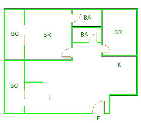 ▲ E(入口)=entrance BR (洋室)=Bedroom BA (浴室)=Bathroom