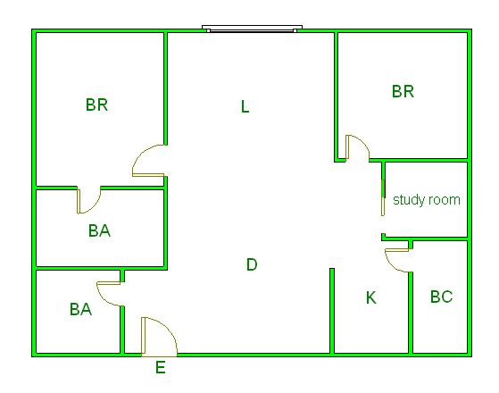 ▲ E(入口)=entrance BR (洋室)=Bedroom BA (浴室)=Bathroom