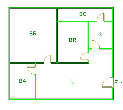 ▲ E(入口)=entrance BR (洋室)=Bedroom BA (浴室)=Bathroom