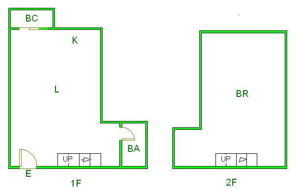 ▲ E(入口)=entrance BR (洋室)=Bedroom BA (浴室)=Bathroom
