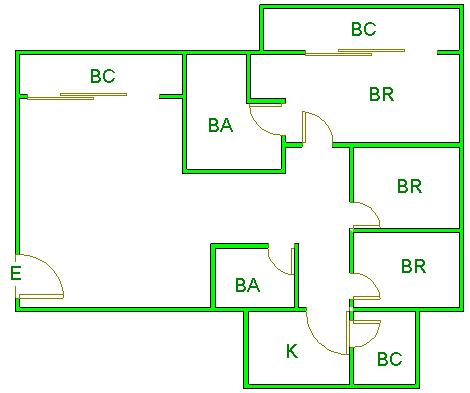 ▲ E(入口)=entrance BR (洋室)=Bedroom BA (浴室)=Bathroom
