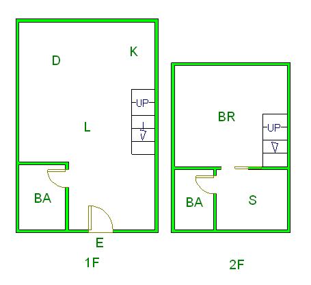 ▲ E(入口)=entrance BR (洋室)=Bedroom BA (浴室)=Bathroom