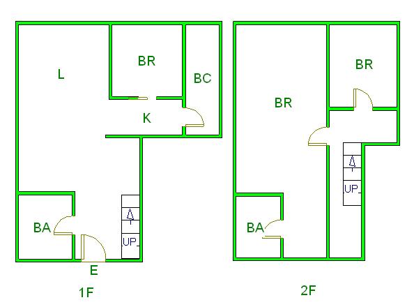 ▲ E(入口)=entrance BR (洋室)=Bedroom BA (浴室)=Bathroom