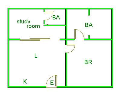 ▲ E(入口)=entrance BR (洋室)=Bedroom BA (浴室)=Bathroom