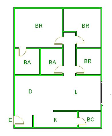 ▲ E(入口)=entrance BR (洋室)=Bedroom BA (浴室)=Bathroom