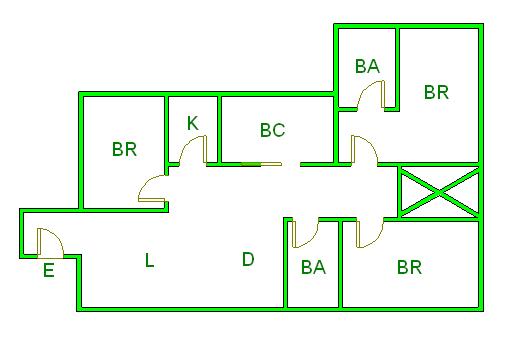 ▲ E(入口)=entrance BR (洋室)=Bedroom BA (浴室)=Bathroom