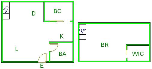 ▲ E(入口)=entrance BR (洋室)=Bedroom BA (浴室)=Bathroom