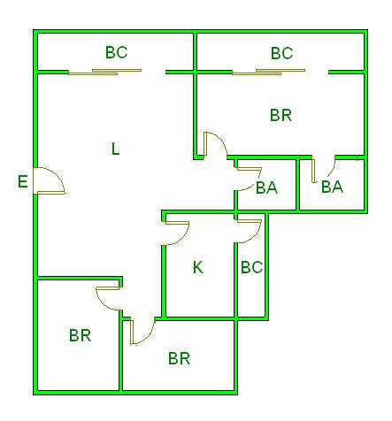 ▲ E(入口)=entrance BR (洋室)=Bedroom BA (浴室)=Bathroom