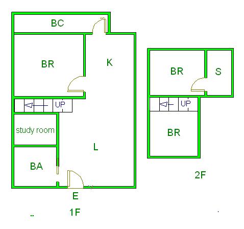 ▲ E(入口)=entrance BR (洋室)=Bedroom BA (浴室)=Bathroom