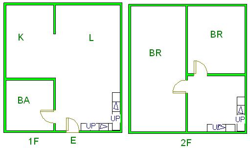 ▲ E(入口)=entrance BR (洋室)=Bedroom BA (浴室)=Bathroom