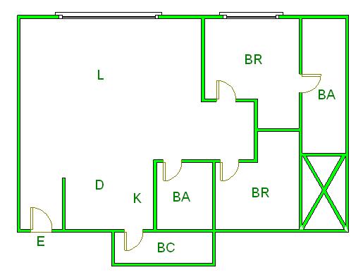▲ E(入口)=entrance BR (洋室)=Bedroom BA (浴室)=Bathroom