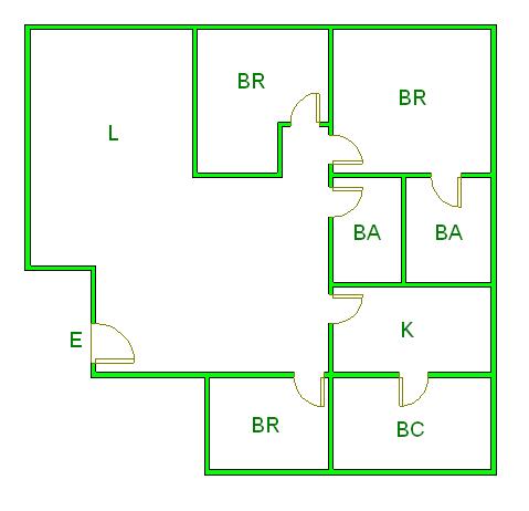 ▲ E(入口)=entrance BR (洋室)=Bedroom BA (浴室)=Bathroom