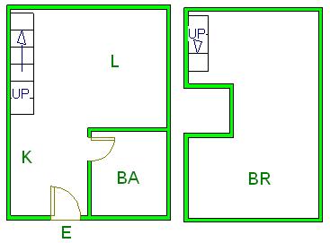 ▲ E(入口)=entrance BR (洋室)=Bedroom BA (浴室)=Bathroom