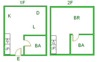 ▲ E(入口)=entrance BR (洋室)=Bedroom BA (浴室)=Bathroom
