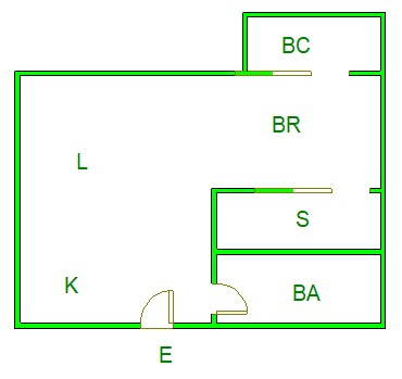 ▲ E(入口)=entrance BR (洋室)=Bedroom BA (浴室)=Bathroom