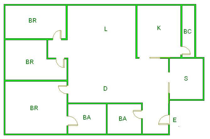 ▲ E(入口)=entrance BR (洋室)=Bedroom BA (浴室)=Bathroom