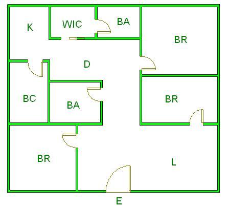 ▲ E(入口)=entrance BR (洋室)=Bedroom BA (浴室)=Bathroom