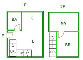 ▲ E(入口)=entrance BR (洋室)=Bedroom BA (浴室)=Bathroom