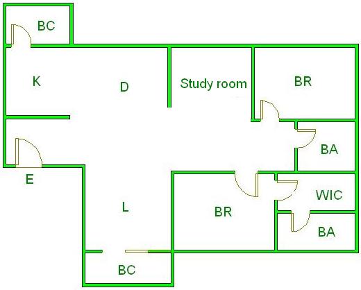 ▲ E(入口)=entrance BR (洋室)=Bedroom BA (浴室)=Bathroom