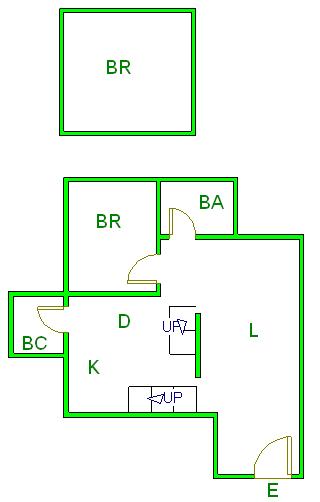 ▲ E(入口)=entrance BR (洋室)=Bedroom BA (浴室)=Bathroom