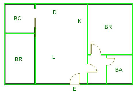 ▲ E(入口)=entrance BR (洋室)=Bedroom BA (浴室)=Bathroom