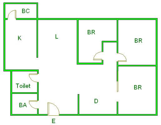 ▲ E(入口)=entrance BR (洋室)=Bedroom BA (浴室)=Bathroom