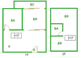 ▲ E(入口)=entrance BR (洋室)=Bedroom BA (浴室)=Bathroom