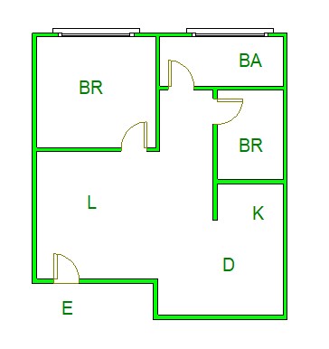 ▲ E(入口)=entrance BR (洋室)=Bedroom BA (浴室)=Bathroom