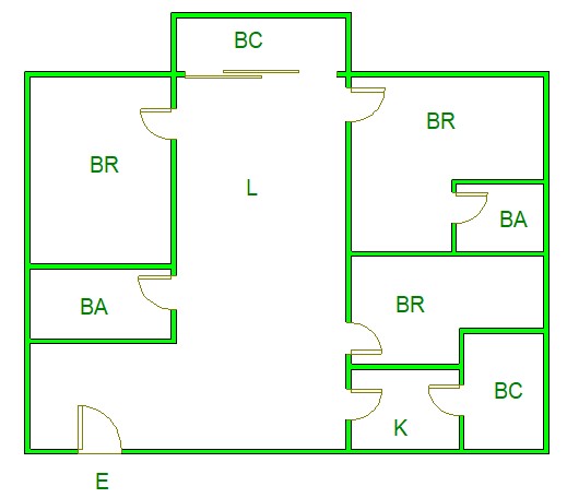 ▲ E(入口)=entrance BR (洋室)=Bedroom BA (浴室)=Bathroom