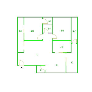 BC (ベランダ)=Balcony JR (和室)=Japaneseroom K (台所)=Kitchen