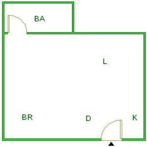 ▲ E(入口)=entrance BR (洋室)=Bedroom BA (浴室)=Bathroom
