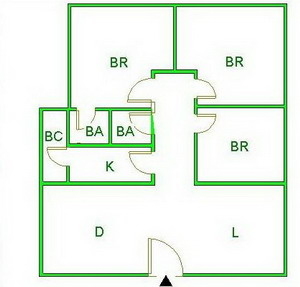 ▲ E(入口)=entrance BR (洋室)=Bedroom BA (浴室)=Bathroom