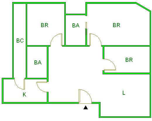 ▲ E(入口)=entrance BR (洋室)=Bedroom BA (浴室)=Bathroom