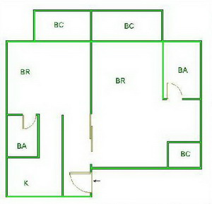 ▲ E(入口)=entrance BR (洋室)=Bedroom BA (浴室)=Bathroom