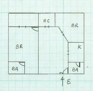 ▲ E(入口)=entrance BR (洋室)=Bedroom BA (浴室)=Bathroom