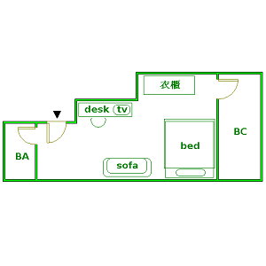 ▲ E(入口)=entrance BR (洋室)=Bedroom BA (浴室)=Bathroom