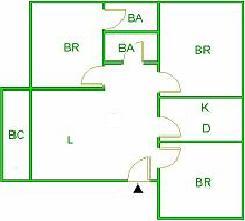 ▲ E(入口)=entrance BR (洋室)=Bedroom BA (浴室)=Bathroom