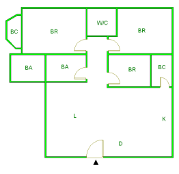 BC (ベランダ)=Balcony JR (和室)=Japaneseroom K (台所)=Kitchen