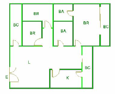 ▲ E(入口)=entrance BR (洋室)=Bedroom BA (浴室)=Bathroom
