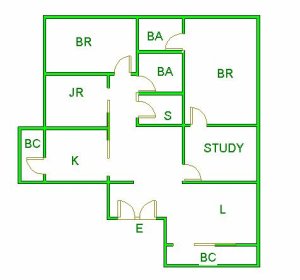 ▲ E(入口)=entrance BR (洋室)=Bedroom BA (浴室)=Bathroom