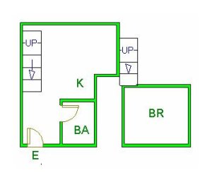 ▲ E(入口)=entrance BR (洋室)=Bedroom BA (浴室)=Bathroom