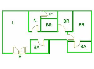 ▲ E(入口)=entrance BR (洋室)=Bedroom BA (浴室)=Bathroom