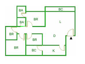 ▲ E(入口)=entrance BR (洋室)=Bedroom BA (浴室)=Bathroom