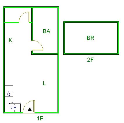 ▲ E(入口)=entrance BR (洋室)=Bedroom BA (浴室)=Bathroom